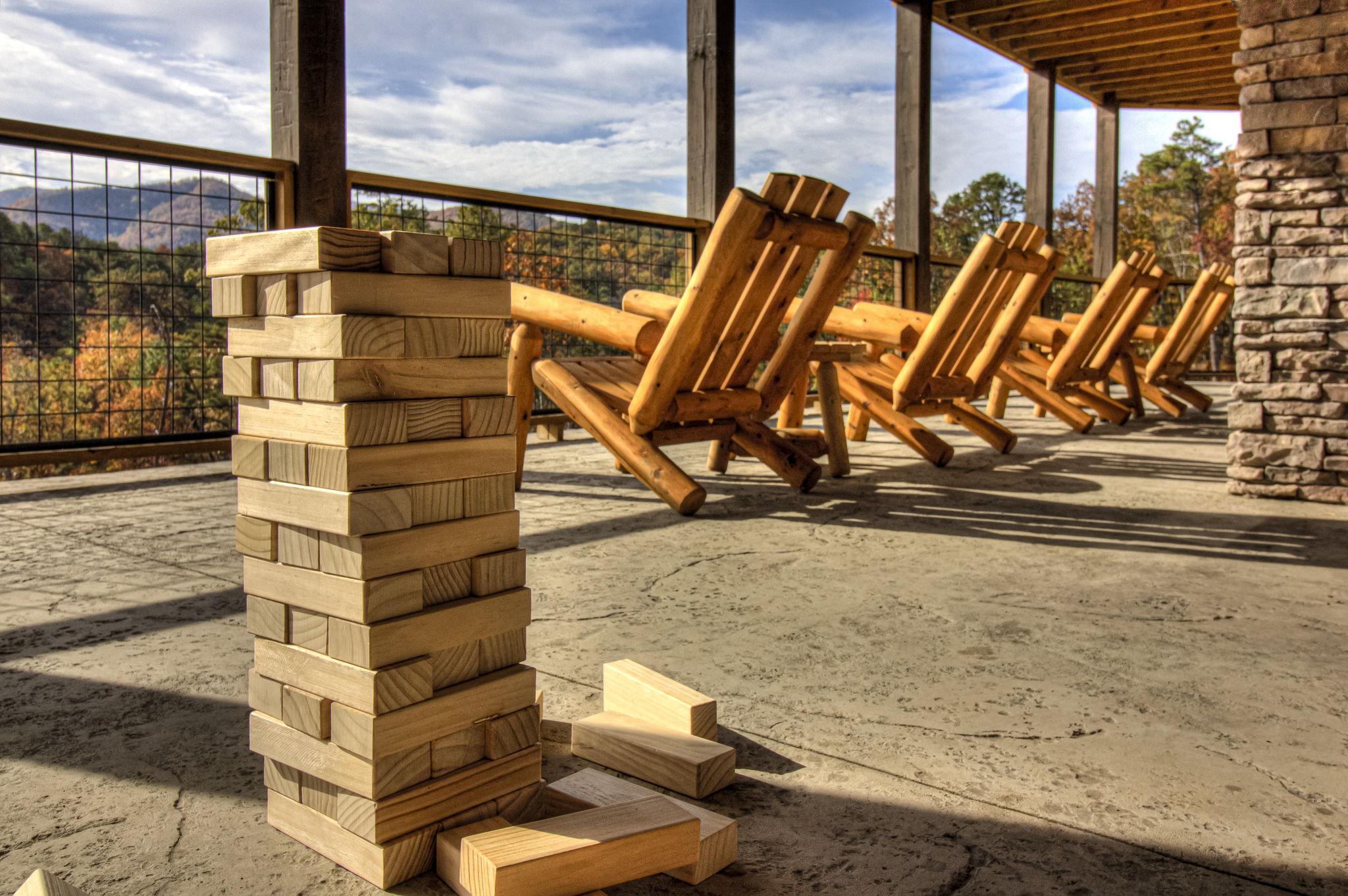 • Hot tub, wood-burning fire pit, cornhole, Connect Four, and Giant Jenga for endless family fun.